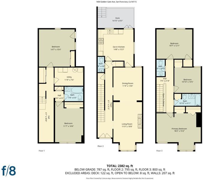 Stunning Victorian Townhouse in San Francisco's Historic Alamo Square District 5BR, 2.5BA Victorian townhouse ideally located just 2 blocks from the historic Painted Ladies and 1 block from the vibrant shopping and dining of Fillmore and Divisadero Streets. Part of the historic Sharon Row, one of San Francisco's most significant remaining rows of identical homes, 1404 Golden Gate is a classic three-level residence featuring soaring 11-foot ceilings, expansive south-facing bay windows flooding rooms with light, and impressive original architectural details including crown molding, ceiling medallions, and balustrade. On the main floor, enjoy the sunny eat-in kitchen with French doors leading to a private deck, large double parlor made for entertaining, and half bath. The top floor offers spacious living with 3 bedrooms and full bathroom, while the lower level features 2 bedrooms, a full bath, laundry, plus a separate rear entrance (ADU potential?). Walking distance to Che Fico, BiRite, Brenda's, Jane the Bakery, Progress yum! Currently tenant-occupied with market-rate rents, this presents an excellent investment opportunity or potential for owner-user conversion. Don't Miss! Walk Score: 95 (Walker's Paradise)