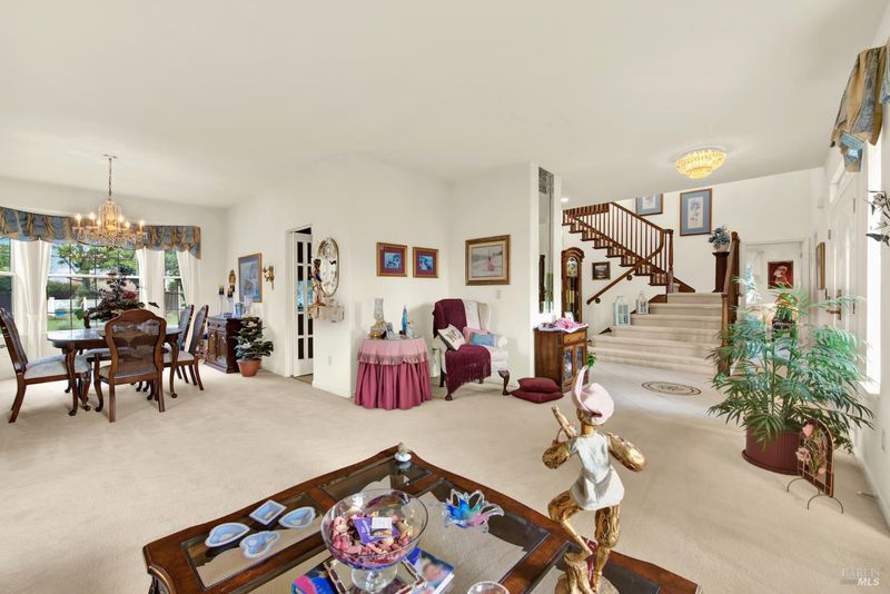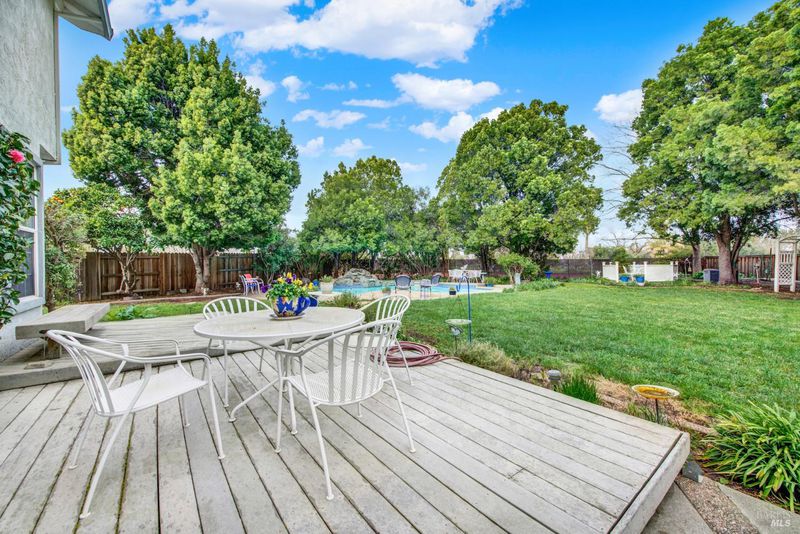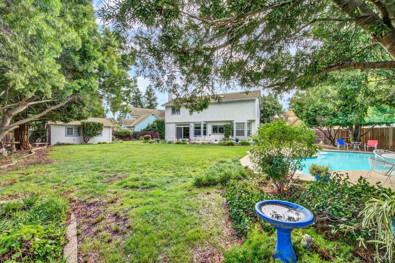 Welcome to this spacious and beautifully maintained home located at 325 Fieldstone Court in the desirable Stonegate subdivision of Vacaville. Offering 2,717 square feet of living space, this five-bedroom, three-full-bath residence features a highly sought-after full bedroom and bathroom on the main level, ideal for guests or multigenerational living. Situated on an oversized, flat, pie-shaped 15,011 square foot lot with no rear neighbors, the backyard provides exceptional privacy and outdoor enjoyment. Enjoy a sparkling in-ground pool with waterfall feature, recently upgraded pool equipment including a new pump and filtration system, lush mature landscaping, and a large detached workshop perfect for hobbies or additional storage. The home has been pre-inspected, with reports available upon request, and has been gently lived in with tasteful updates throughout. Interior highlights include slab granite countertops with full backsplash, laminate flooring in the family room, and newer kitchen appliances. The generous primary suite offers double vanities, a soaking tub, separate shower, upgraded vanity tops, tile flooring and tub surround, and a spacious walk-in closet. A rare combination of space, functionality, and an exceptional lot make this property a standout opportunity.
