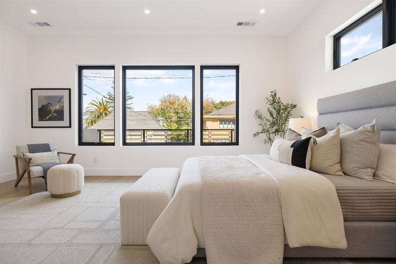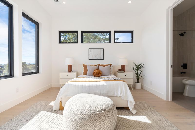 Another stunning ground-up new construction in Crocker Highlands by Cube Builders! Designed with a curated contemporary aesthetic that complements the neighborhood’s architectural character, this home features clean modern lines, expansive windows, warm cedar shingle accents, and exceptional indoor-outdoor flow. The main level offers an ideal floor plan: a spacious great room with wide-plank oak flooring, abundant natural light, and an effortless connection to the dining area and chef’s kitchen. Large sliders open directly to a level-out backyard with lawn and a dramatic covered patio, perfect for year-round entertaining. Upstairs, all four bedrooms are en-suite, a rare and highly desirable layout. The primary suite includes a stunning modern bath and generous scale while Bay views add a quiet layer of luxury. The additional suites provide comfort and flexibility for family, guests, or work-from-home needs. Thoughtfully built and beautifully finished, 761 Calmar brings together modern design, craftsmanship, and functionality in one of Oakland’s most friendly and sought-after neighborhoods.