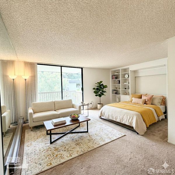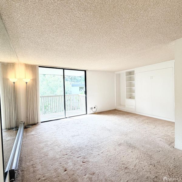 Exceptional Value in Shelter Creek - Top-Floor Studio Opportunity! Priced to sell as the lowest-cost studio in the community, this top-floor residence offers an incredible opportunity to own in the highly desirable, resort-style Shelter Creek complex in San Bruno. This charming and well-maintained studio features a bright, open-concept living and dining area, complemented by a functional kitchen with a convenient breakfast bar, perfect for casual meals or entertaining. A built-in Murphy bed maximizes space and flexibility, while a spacious walk-in closet provides ample storage. The kitchen is fully equipped with an electric range, refrigerator, microwave, and dishwasher, making it move-in ready. Step out onto your private balcony and unwind with peaceful views of the lush greenbelt surroundings. Additional highlights include an assigned covered parking space and a dedicated storage locker for added convenience. Residents of Shelter Creek enjoy access to an array of resort-style amenities, including three swimming pools, a hot tub, tennis courts, a fitness center, sauna, and a vibrant clubhouse complete with billiards, ping-pong, and Wi-Fi. Ideally located just minutes from YouTube headquarters, leading biotech campuses, and major commute routes including Highways 280, 380, and 101, as well as BART and Caltrain. Shopping, dining, and everyday conveniences are all within easy reach. Don't miss this rare opportunity to own a peaceful, amenity-rich retreat at an unbeatable price!