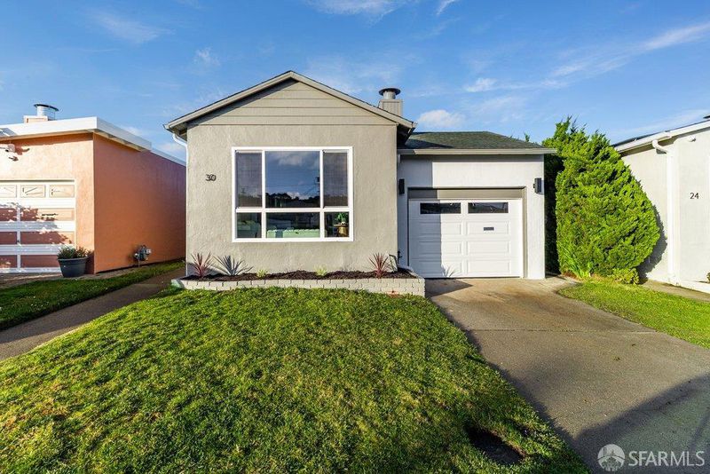 Get ready to kick off the year with a bang! You won't want to miss 30 Rockridge - this Mid-Century Modern treasure is ready for you to call home! Fresh paint inside and out, stunning new flooring, and a modern kitchen bathed in incredible lighting await you. The open concept layout is perfect for entertaining and has plenty of space to spare! With 1160 square feet, this fabulous home offers 3 bedrooms and 2 baths, plus plans to transform the garage into a 4th bedroom! The master bath features breathtaking wall-to-wall tile that you absolutely have to see to believe. Located conveniently near Ranch 99 Market, Serramonte Center, Westlake Shopping Centerg, Daly City BART, and I-280, this home has everything you need and more. Don't wait - it won't last long!