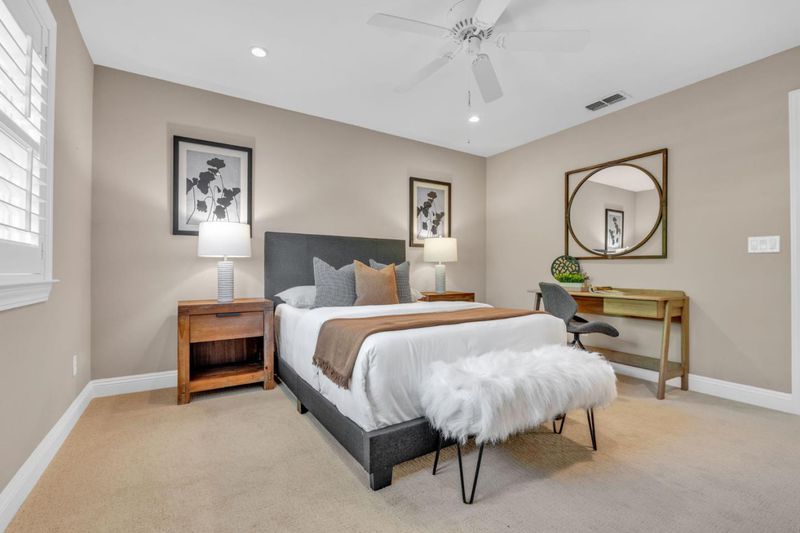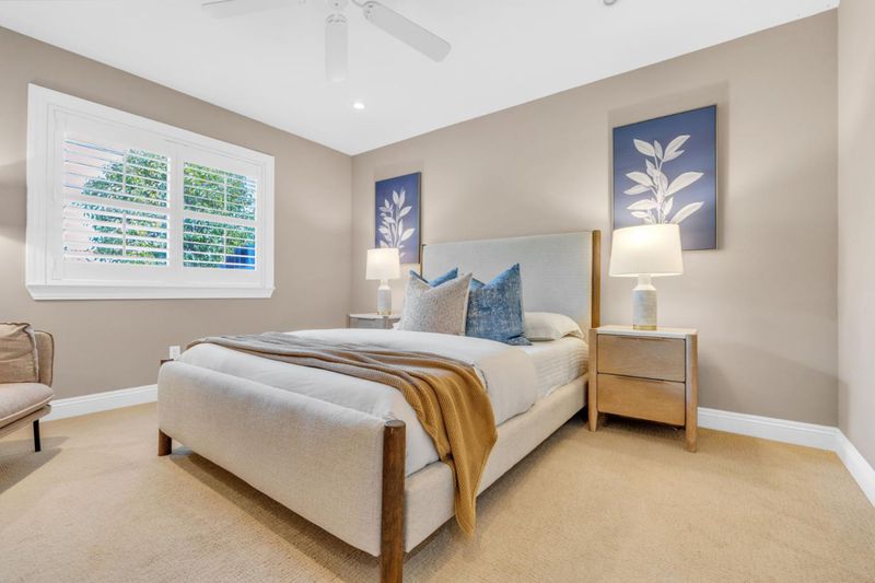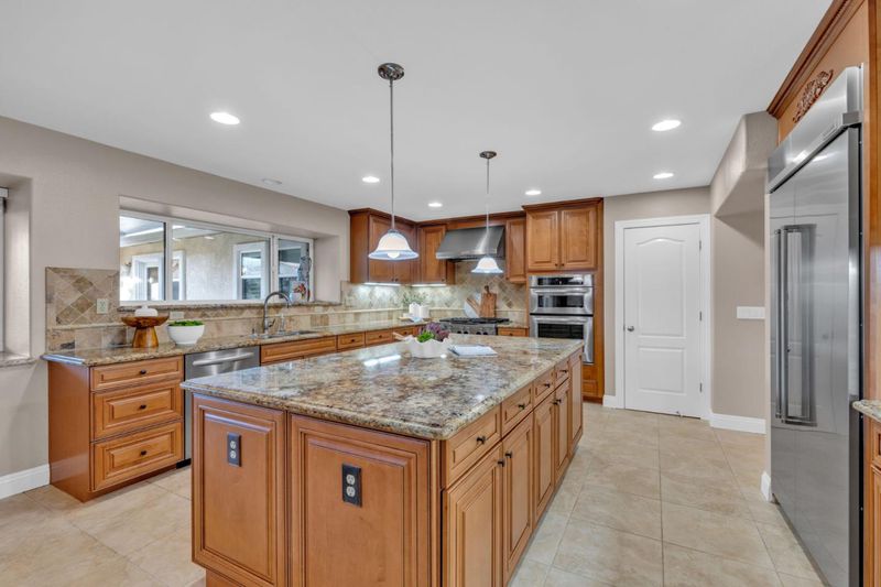 Already private on a cul-de-sac, this home seems especially quiet and peaceful. This is a generous sized, one level home in a truly private setting. Completely remodeled, this home features large open spaces in the great room living room and in the huge combined kitchen, family room and informal dining space. There's a formal dining room and a large, covered patio for outside dining on warm California evenings. This kitchen has everything. Granite counters provide useful counter space and there's an abundance of convenient storage. Kitchen Aid appliances are stainless steel and the built in 42" fridge stays. There is recessed lighting as well as under cabinet lights, and there's a pantry and even spaces to put plants or other treasures. The primary suite has new carpet, French doors, crown molding, bedside reading lamps, recessed lighting, plantation shutters and a tray ceiling. The private bathroom has heated floors and offers a large shower, soaking tub with jets, dual sinks and a spacious walk in closet with shelf organizers. There is a second bedroom ensuite. And every bedroom has a walk in closet and ceiling fan. There's 200 amps of power, copper plumbing, central AC, and a finished garage. Outdoor spaces are lovely and serene. The variety of plant life is delightful!