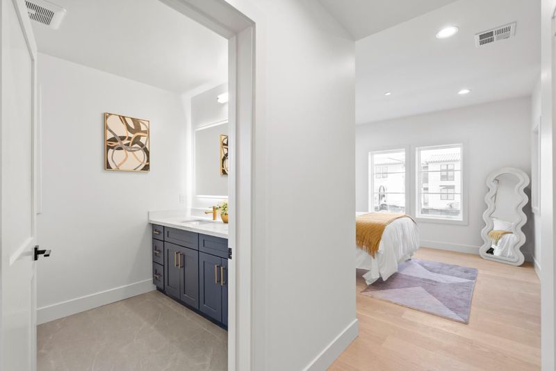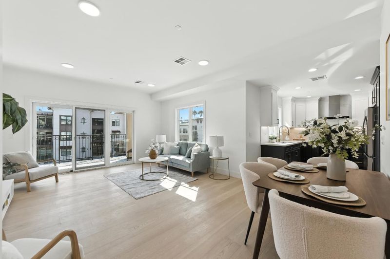 New construction condos in Downtown San Carlos. Elegant interior finishes. Discover this move-in-ready, newly constructed 2-bed, 2-bath condo spanning 1,265 sq ft, with a private balcony. The interior has elegant recessed lighting, engineered hardwood floors, efficient heating and air conditioning. The gourmet kitchen is appointed with stylish quartz countertops and new high-quality appliances, including a gas range oven, refrigerator, dishwasher, and in-unit stacked washer and dryer. The spacious primary suite includes ample closet space and an ensuite bathroom with convenient shower, dual sink vanity, and LED mirror with defogger. Enjoy assigned parking in a securely gated garage, and exterior security cameras for added peace of mind. Proximity to Downtown San Carlos, San Carlos Caltrain Station, and major transit connections, including Highway 101 and San Francisco International Airport.