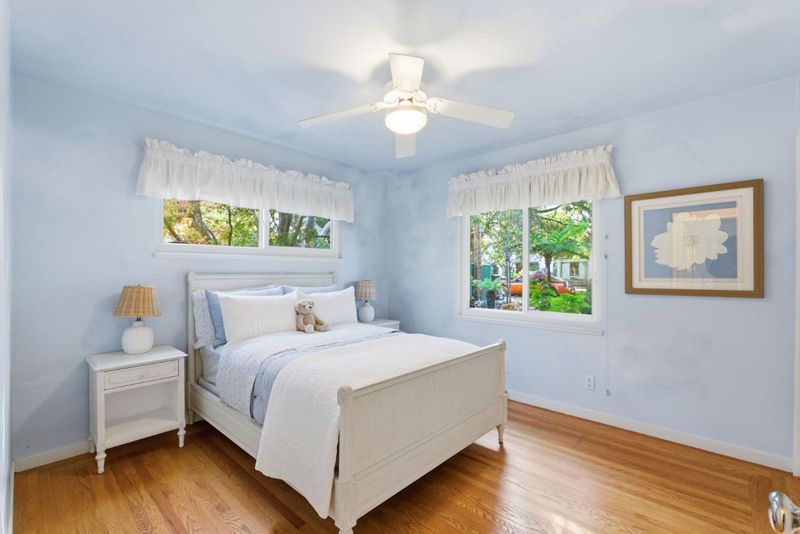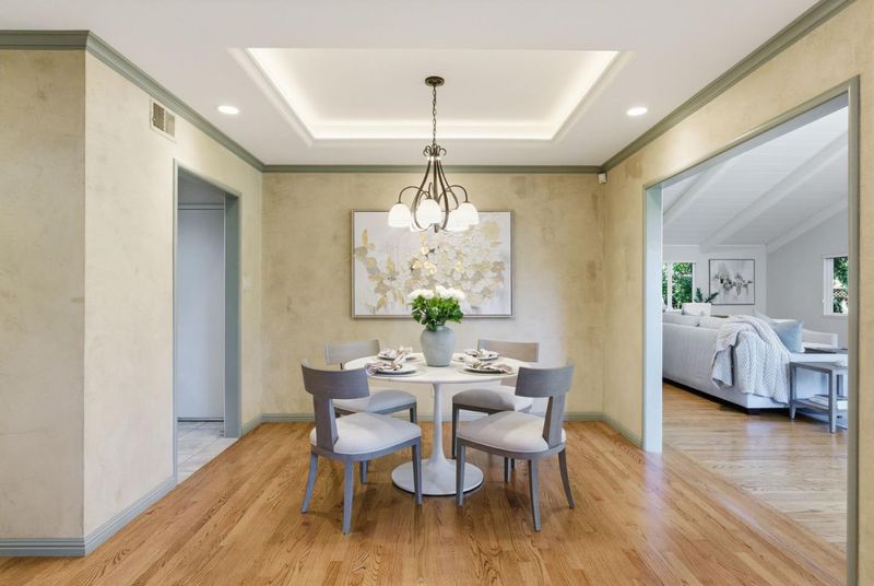 Tucked in a premier North Los Altos cul-de-sac, this warm and inviting single-level home blends classic appeal with modern updates, just minutes from the Village's shops, dining, and acclaimed Los Altos schools. Freshly updated and move-in ready, the home features elegant crown moldings, rich hardwood floors, and a rare 600-square-foot family room with vaulted ceilings and fireplace. Designed for effortless indoor-outdoor living and entertaining, the spacious living and dining area includes a cozy fireplace and built-in speakers. The well-appointed kitchen offers stainless steel appliances, wine refrigerator, abundant storage, and seamless flow to the living spaces. Three generous bedrooms include a serene primary suite with a built-in desk and a beautifully updated ensuite bathroom. The lush, professionally landscaped grounds create a private, picturesque setting that truly blurs the line between indoor comfort and outdoor enjoyment. Additional highlights include an oversized attached 2-car garage with a laundry area, and ample storage, Culligan soft water & drinking system, central air conditioning, secure oversized mailbox, a garden shed whose paint and roof shingles match those of the house, and gutter guards that keep the gutters clog-free year-round. Welcome home!
