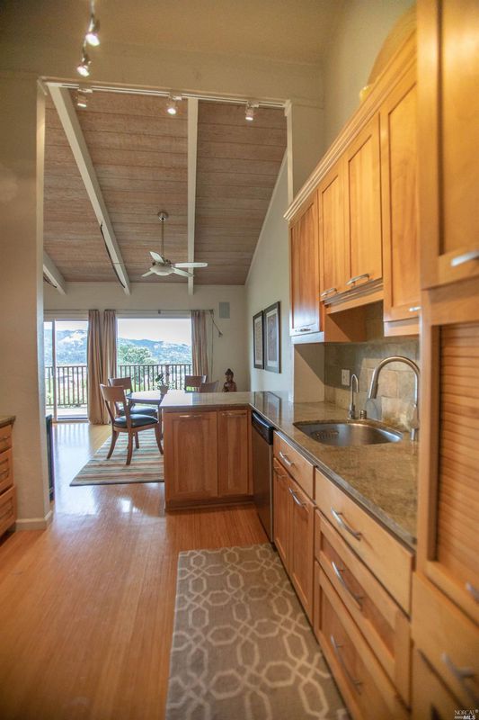 Sweeping views, a fabulous kitchen and incredible storage await! One of only eight units in the Greenbrae Heights complex, set in the hills overlooking the bay and Richmond Bridge. Two bedrooms plus a small spare room make this unit ideal for working remotely. A spacious, alcove-like entry welcomes you with its bright, potted lemon. Vaulted ceilings on offer an airy flow from the great room to the kitchen and deck. When the sun sets and the lights twinkle below, stay cozy by the gas fireplace. Whip up a gourmet meal in the remodeled kitchen, with plenty of solid wood cabinetry. Both bedrooms have large windows and closets. Drive an EV? The carport is already wired for it. Easy access to 101, the Larkspur ferry, SMART train, Marin Country Mart and Bon Air Center. Hiking trails nearby. A beautiful home at an incredible value.