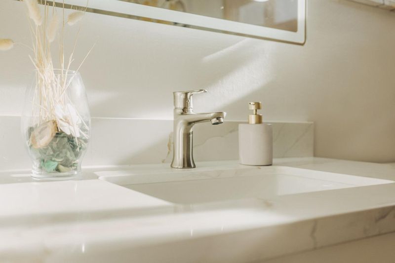 - Dual Flush Toilet, Full on Ground Floor, Primary - Stall Shower(s), Shower and Tub, Solid Surface, Stone, Updated Bath