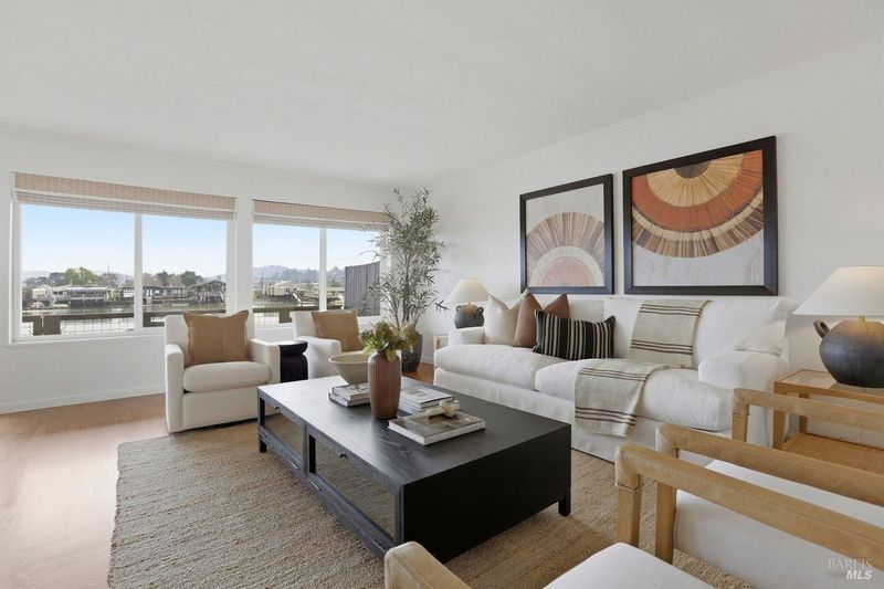 Not a single stair to enter this lovely 3 bed 2 bath waterfront condo! This spacious ground-level unit has 1,664 square feet of well designed space. (And a rare private 2 car garage.) The south facing orientation with floor to ceiling windows facing the water brings loads of natural light into the main living spaces. The recently updated tasteful kitchen takes in views of the creek through an open layout. An elegant dining area and wood burning fireplace, (with gas starter,) in the living room complete the main living areas. Beautiful hardwood floors flow through most of the condominium. This lovely unit also offers a full size laundry room and two beautifully updated bathrooms. There is ample closet space including both a walk in and wall closet in the master bedroom. A serene and nicely sized private deck off the living room is perfect for morning coffee, dining out or simply unwinding while looking at the marine birds. A few steps away, the building's dock offers direct access to the Corte Madera Creek. The detached 2 car garage is the closest to the building. There is also a separate storage closet close to the unit. Greenbrae is an ultimate convenience location--super close to great shopping, hiking, bike paths, downtown Larkspur,101 and the Larkspur ferry terminal.