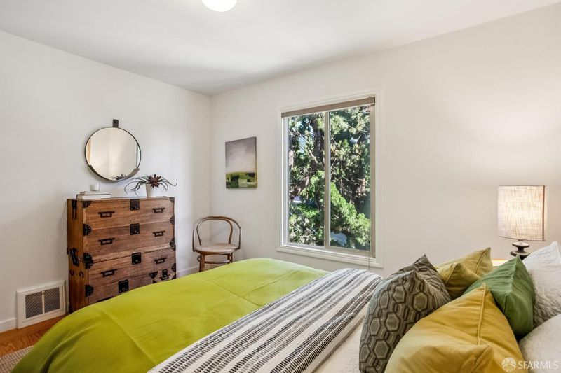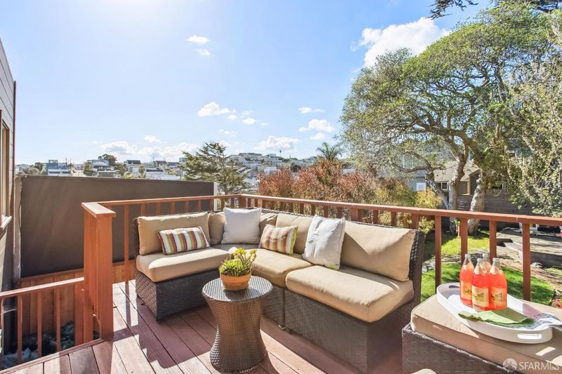 This special home in sunny Bernal Heights features 2BR/1BA, an open living/dining area and a wonderful remodeled kitchen with quartz countertops, Miele appliances and ample cabinetry. The kitchen opens out to a deck offering indoor/outdoor options - enjoy a cup of tea in the living/dining room or bask in the afternoon sun on the deck with neighborhood views. A spacious and verdant back yard spreads out from the house punctuated by a spectacular California buckeye tree and a raised platform deck, another space to rest and relax. Completing the home is a full-sized garage with plenty of space for carpentry, storage, possible expansion potential and parking. Don't miss this one!
