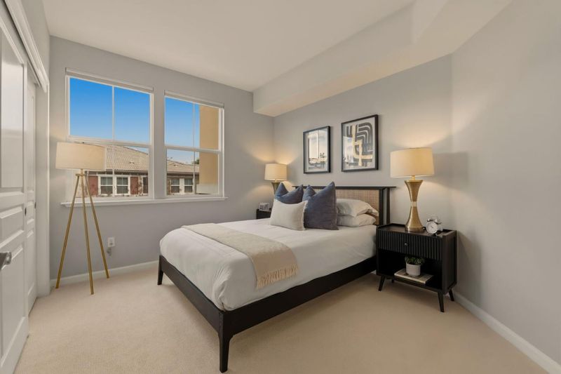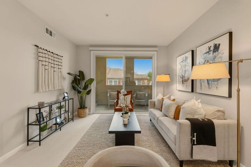 Welcome to 1883 Agnew Road, #325. This bright and inviting 2-bedroom, 2-bath home features an open-concept kitchen with stainless steel appliances and ample cabinetry, flowing seamlessly into a spacious living area with high ceilings and a large glass slider opening to a private balcony, ideal for morning coffee or evening relaxation. The primary suite offers abundant natural light, generous space for furniture, a walk-in closet, and an en-suite bath with dual sinks, while the second bedroom provides flexible use as a guest room, office, or nursery. Additional conveniences include in-unit laundry, reserved covered parking, and elevator access. Move-in ready with a cohesive neutral palette and a thoughtful floor plan maximizing comfort and light, this unit may see updates to the kitchen and baths, offering future potential. Residents enjoy a well-maintained complex with secure access, landscaped common areas, and community amenities such as pool, spa, clubhouse, and fitness center (confirm with HOA). Ideally located near major Silicon Valley employers including NVIDIA, Intel, Oracle, and Cisco, with easy access to Highways 101, 237, and 880, Caltrain, and VTA Light Rail, as well as nearby parks, Rivermark Village, and Santa Clara University.