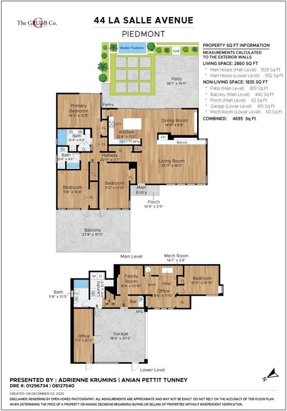 Meticulously updated, 44 La Salle offers a refined take on midcentury modern design. Sunlight pours through floor-to-ceiling windows, highlighting crisp lines & warm, natural finishes. A sleek fireplace w/custom fluted wood paneling anchors the living room, creating an inviting & elegant atmosphere. The chef’s kitchen features a large island, Carrara marble countertops & Thermador appliances, seamlessly connecting to the dining area & a dramatic wall of sliding glass doors out to the serene rear patio w/seating area, gas fire pit wood-burning pizza oven & tranquil fountain, designed for effortless indoor-outdoor living. Set on ~ 1/3 acre, the expansive grounds are ideal for play or entertaining, w/mature olive trees imported from Italy thoughtfully woven throughout, enhancing the home’s natural beauty. On the main level, 2 light-filled BRs open onto a large deck & share a beautifully appointed full bath. The primary suite offers direct access to the patio & features a luxurious en suite bath w/heated floors. Lower level includes a guest BR, fam rm, kitchenette, full bath w/steam shower, laundry, & bonus space off the garage ideal for a home office or gym, along with a 2 car garage w/ interior access. A modern retreat, 44 La Salle is equally suited for entertaining or relaxation.