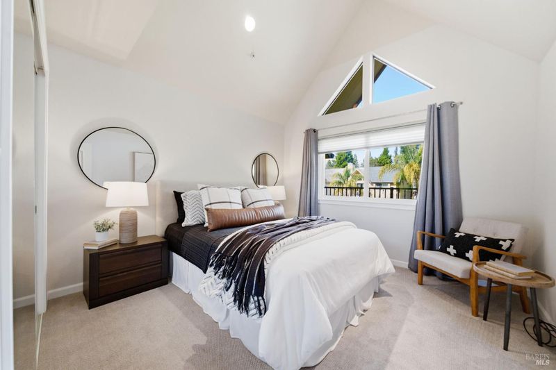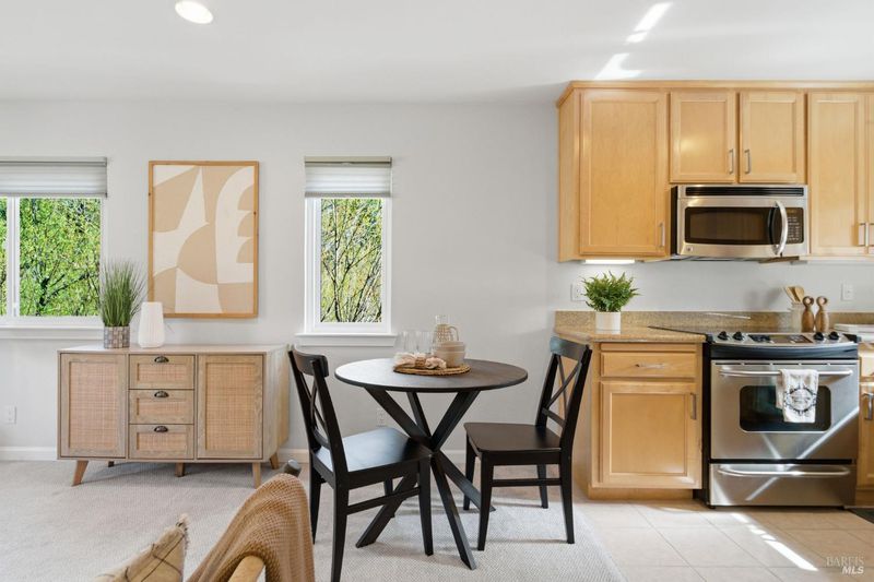 Welcome to Foss Creek Villas in downtown Healdsburg—just a short walk to the historic plaza, award-winning restaurants, tasting rooms, and boutique shopping. This light-filled end-unit condo overlooks a peaceful greenbelt and creek, featuring vaulted ceilings, a bedroom that fits a king-size bed, top-down/bottom-up blinds, keypad entry, and a smart thermostat. A move in condition opportunity—perfect as a full-time home or wine country getaway in the heart of Sonoma.