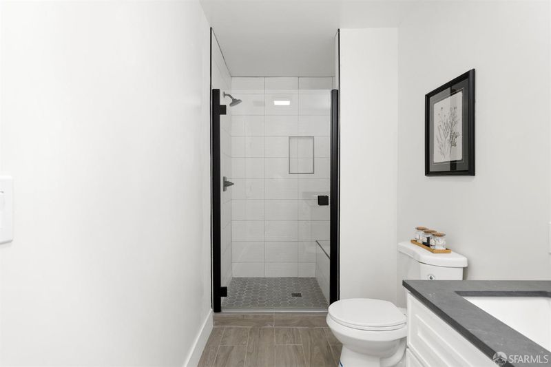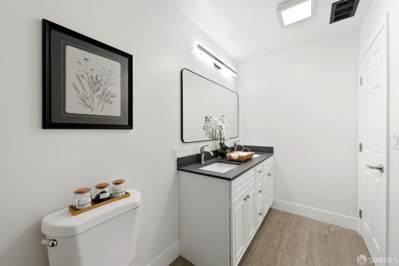 Introducing 2469 Potter: an exceptional new construction single-family home nestled in a serene, sun-kissed hillside location in a coveted neighborhood. Expertly designed by Noel Garcia, this stunning residence boasts 1,855 square feet across two levels, featuring 3 bedrooms, 4.5 bathrooms, a one-car garage, a finished storage area with ADU potential, and a spacious backyard. The upper level boasts an open floor plan living room, dining room, & chef's kitchen with direct access to the landscaped backyard, two generously-sized bedrooms with walk-in closets & ensuite bathrooms, an office nook, full laundry room, powder room, and a spacious master suite with a private deck. The downstairs level contains a 1-car garage, full bathroom, kitchenette, dining area, and storage space. Located just blocks from Maxwell Park, this home showcases a contemporary open-concept living area that is both inviting and functional - ideal for entertaining family and friends. This home features excellent transportation options with convenient access/entry from both Potter St and Renwick St, located less than 5 minutes from 580, offering great walkability (Walk Score of 70), and just a short 10-minute walk to public transit. Property provides excellent Airbnb potential for owner-occupant.