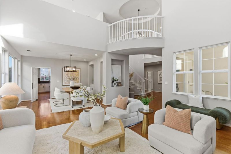 Beautifully updated home offering 5 BD and 4.5 BA, introduced w/ the gentle presence of the Queen of the Nights, often cherished as a symbol of good fortune and new beginnings. The soaring volume ceilings & a sweeping curved staircase that sets a refined tone throughout the home. The gourmet kitchen features high-end appliances including a Sub-Zero fridge, abundant cabinetry, & a generous island ideal for cooking and gathering. Light-filled living spaces showcase hardwood floors across the main level and provide seamless flow for everyday living. A desirable floor plan offers 1BD & 1.5 BA on the main level, perfect for guests or extended family. Upstairs bedrooms include multiple private suites, a remodeled Jack-and-Jill w/ 2 vanities, & a spacious primary suite w/ a large walk-in closet & oversized spa-style bathroom. Additional upgrades include remodeled baths, a whole-house fan for cooling and efficiently venting cooking aromas, and fragrant Queen of the Nights planted along the side yard. The backyard has been thoughtfully upgraded w/ lifetime-guaranteed pavers, a covered pergola for year-round outdoor living, & mature landscaping that enhances privacy and serenity. A 3-car garage with epoxy floors and two EV chargers. 1 car garage has Bose surround sound system.