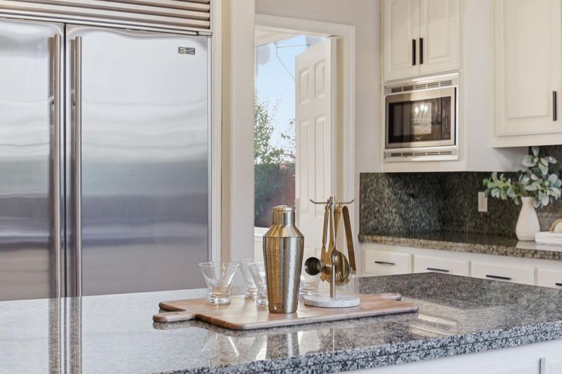 - Countertop - Stone, Dishwasher, Garbage Disposal, Hookups - Ice Maker, Island, Microwave, Oven - Double, Oven Range - Gas, Pantry, Refrigerator