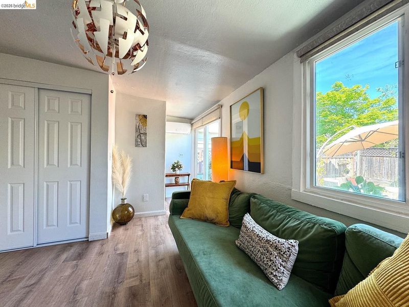 This charming Upper Laurel bungalow captures the essence of peaceful hillside living while keeping you connected to Oakland's vibrant neighborhoods. Step into a bright and welcoming living room where windows frame calming Bay views-an ideal spot to unwind at the end of the day or enjoy quiet mornings with a cup of coffee. Comfortable as it is today, the home also offers an opportunity to bring your own ideas and updates over time. Outside, the home opens to a private backyard retreat surrounded by greenery. A garden seating area creates the perfect setting for morning coffee, weekend breakfasts, or relaxed BBQ gatherings with friends and family. Tucked along a quiet street, the home offers a sense of privacy and calm that makes everyday living feel like a getaway. From here, it's just minutes down the hill to the Laurel District's cafes, markets, and local shops, with easy access to Montclair Village, the Dimond District, and nearby parks and redwood trails. Whether you're exploring neighborhood restaurants, visiting farmers markets, or simply watching the sunset over the Bay, this classic bungalow offers a wonderful balance of nature, community, and convenience.