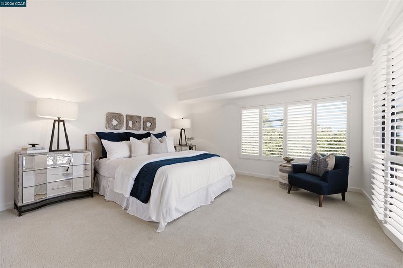 Easy level-in access welcomes you to this beautifully appointed home with sweeping panoramic views. A versatile interpretation of timeless tradition is expressed throughout, with dramatic high ceilings and disappearing walls of windows that fill the home with natural light. The beautifully updated kitchen features stainless steel appliances, new quartz countertops, abundant cabinetry, and the upscale finishes expected in a quality home. The spacious living room is anchored by a wood-burning fireplace, while two private decks offer wonderful spaces for outdoor enjoyment. A flexible den, enhanced by the stunning views, provides endless possibilities for work, relaxation, or guests. The expansive primary suite includes a charming sitting area and a large walk-in closet/dressing room. Spa-inspired baths have been tastefully updated, and the home’s refined interior is completed with high-end carpeting, white oak LVP flooring, custom blended paint, grand crown and base moldings, a rare garage, and additional carport parking. Distinctive details and thoughtful upgrades are found throughout this exceptional home.